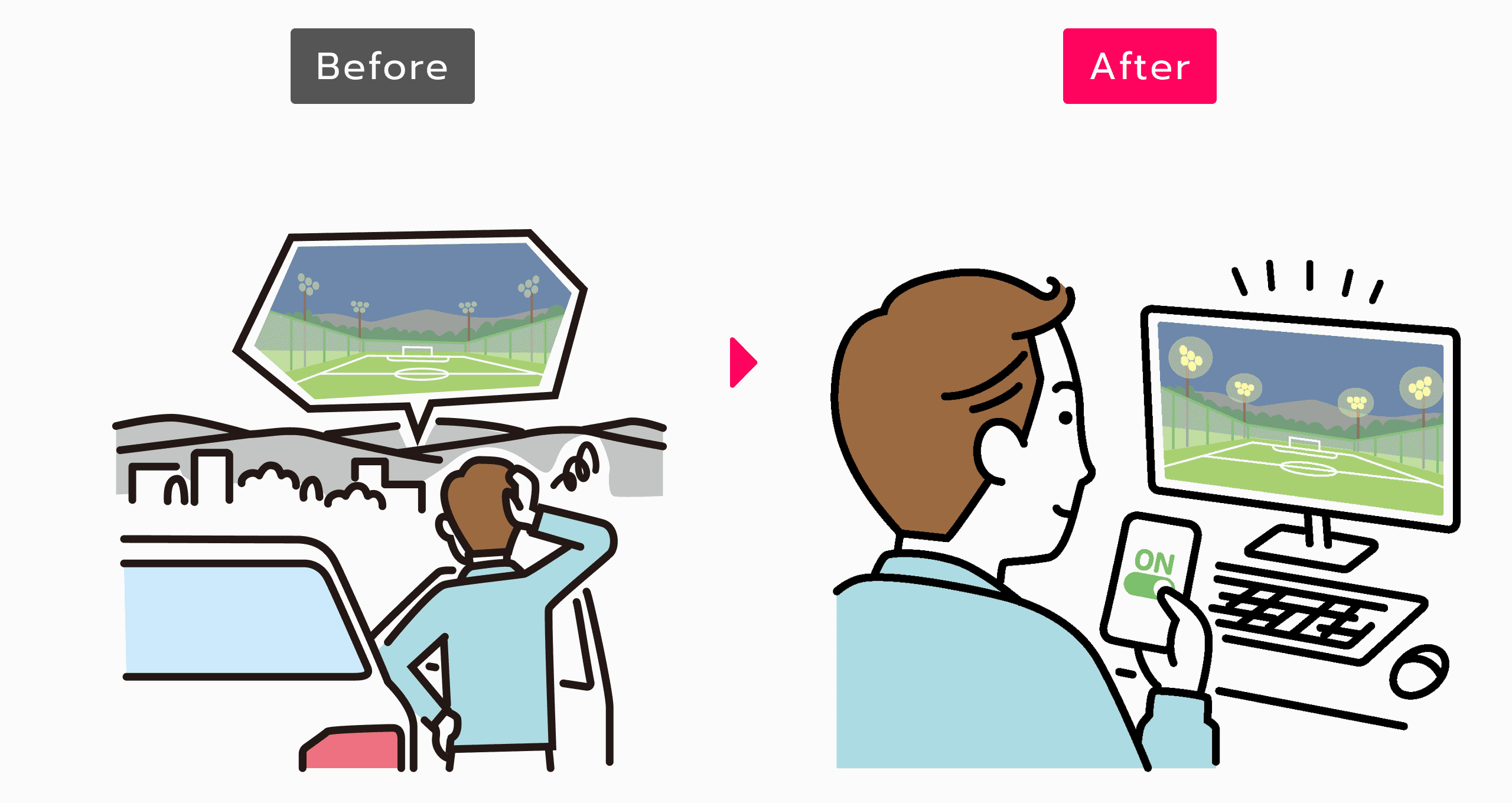 従来、建設現場やビルでは、足元が暗い中で各フロアを巡回し照明を点灯・消灯する必要があり、担当者の負担や安全面で課題がありました。