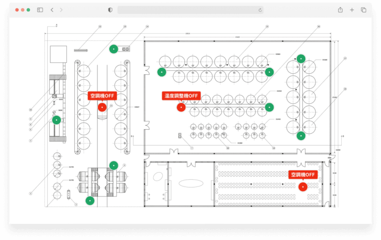 設備の電源のON/OFFの状態を、工場の図面上に表示します。