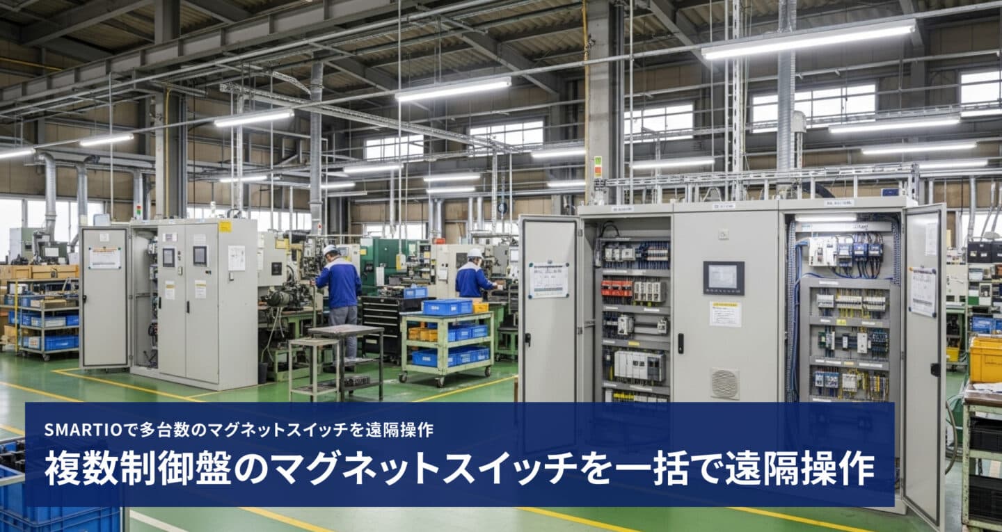 SMARTIOを使えば、現場に行かずにクラウド経由で複数の制御盤のマグネットスイッチを一括で操作したり、電源の状態を手元で確認ができます。また、現地の押しボタンと併用することで、「現地操作と遠隔操作の両方に対応した構成」が可能です。現場の課題と導入時のポイントを整理します。