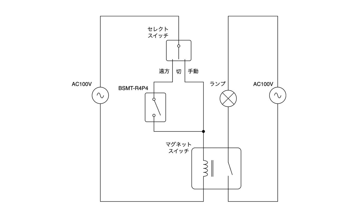 a接点が閉じ、マグネットスイッチの制御端子に給電 → 負荷回路ON。 - セレクトスイッチ「現地」