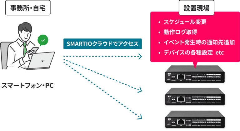 SMARTIOの設定変更や管理作業を、インターネット経由でも安全に遠隔操作できるため、より柔軟な運用が可能になります。