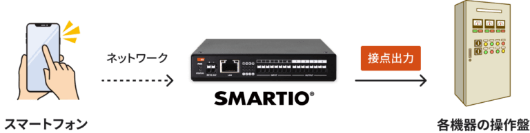 さらに、現地の操作ボタンによる操作と、SMARTIOを用いた遠隔操作の両方が可能な構成も組むことができますので、現地操作を優先し、安全な遠隔操作の構成が実現可能です。