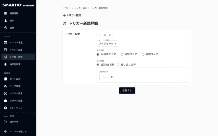 トリガー設定は管理権限のみアクセスすることができます。